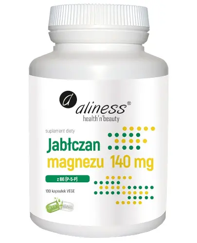 Aliness Jabłczan Magnezu 140 mg z B6 - suplement diety zawierający w swoim składzie magnez oraz witaminę B6. Produkt przeznaczony dla osób dorosłych.