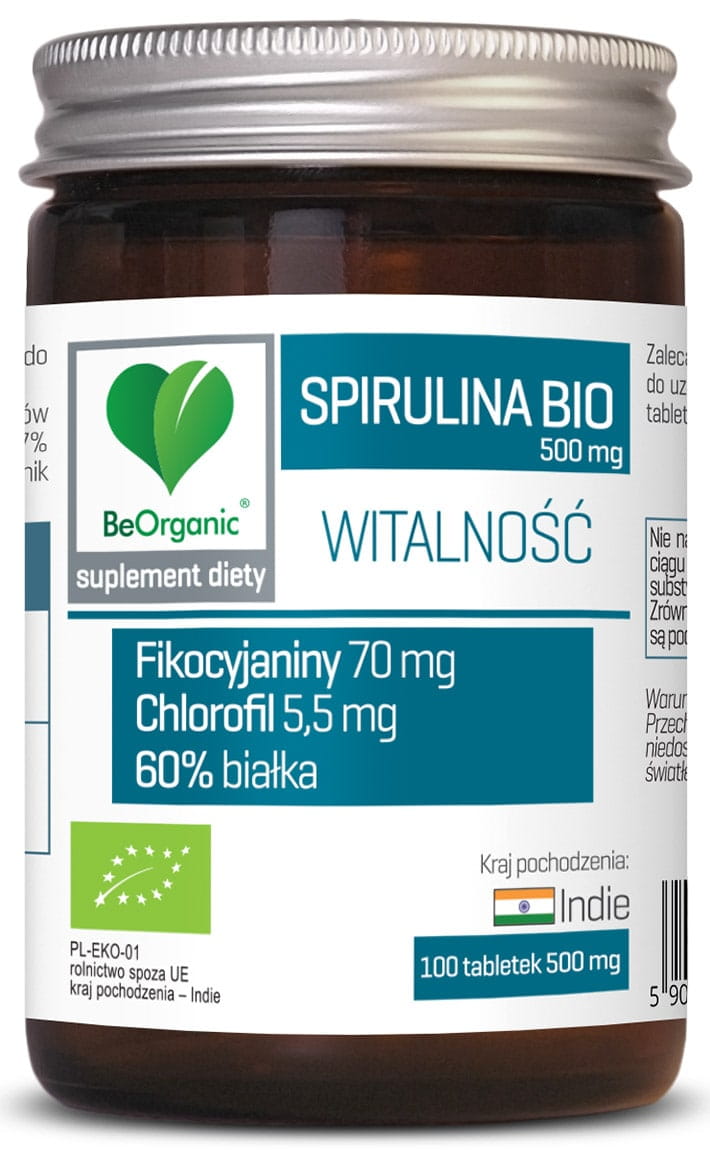 Składniki: Ekologiczna spirulina w proszku (Arthrospira platensis), substancja przeciwzbrylajaca: dwutlenek krzemu.