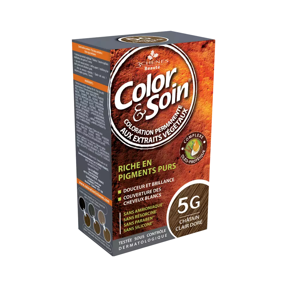 Color & Soin - trwała farba do włosów, która już od pierwszego użycia barwi 100% siwych włosów, a także chroni je i pielęgnuje. Została przetestowana w ramach kontroli dermatologicznej. Produkt został opracowany z uwzględnieniem natury włosów, minimalizuje podrażnienia skóry i ryzyko wystąpienia alergii. Ponadto, dzięki białkom roślinnym i olejkom eterycznym, Color & Soin powoduje, że włosy błyszczą, są puszyste i miękkie.