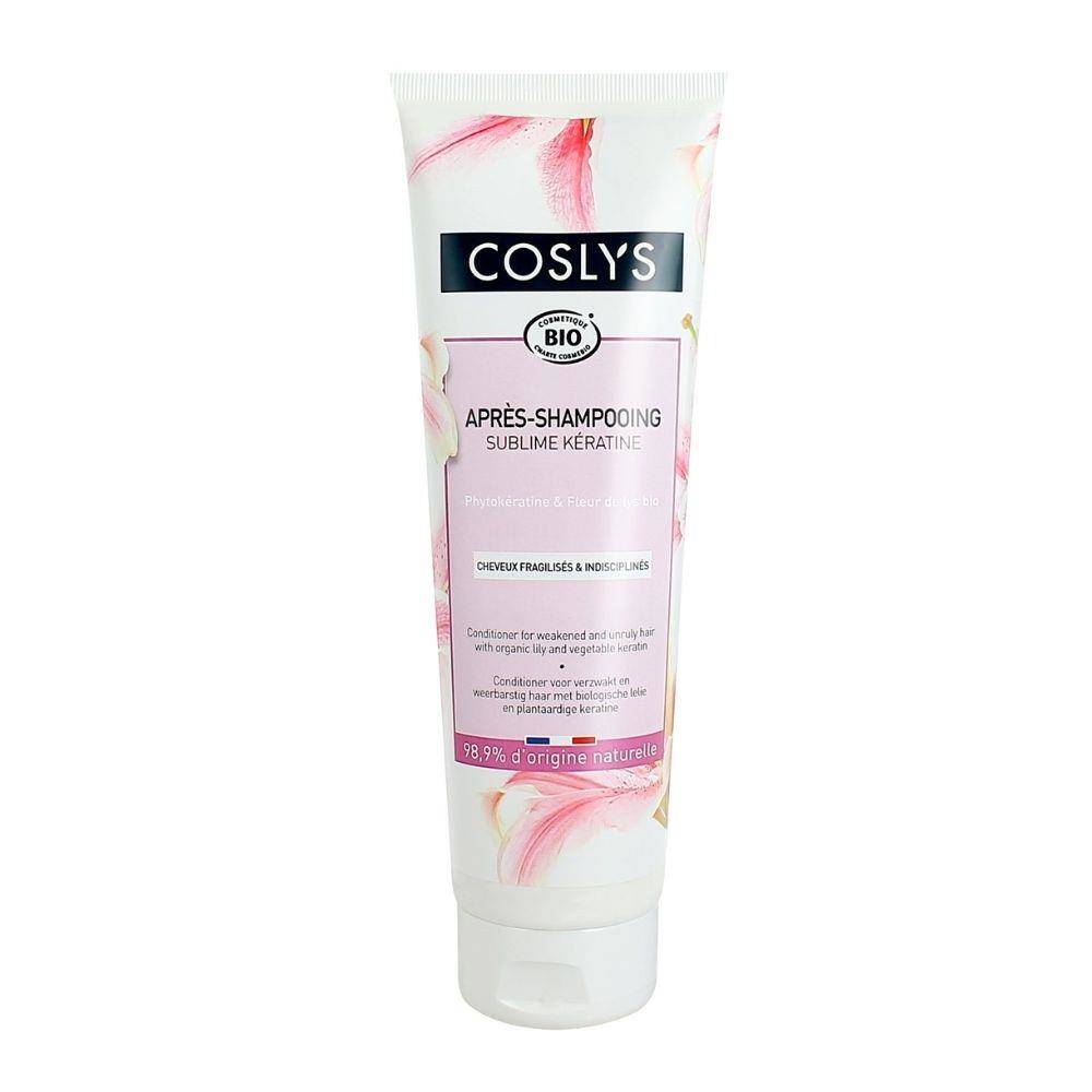 Po umyciu włosów szamponem z keratyną Coslys, nałożyć niewielką ilość odżywki na czyste i wilgotne włosy, na całej długości. Pozostawić na włosach 2 minuty, a następnie spłukać.
