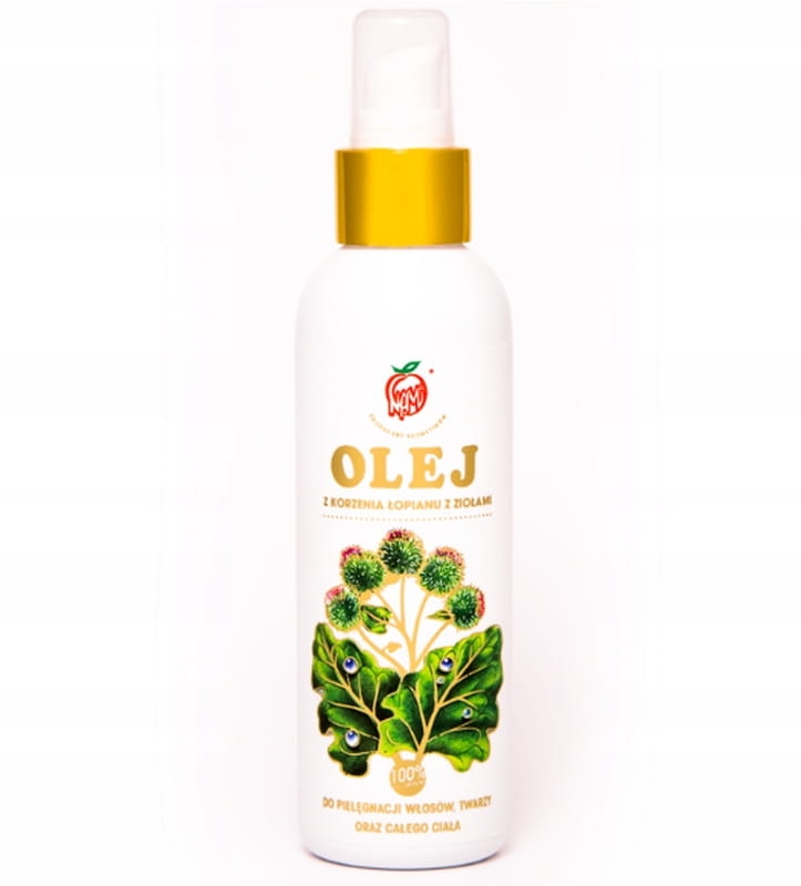 Ekstrakt olejowy z korzenia łopianu i ziół:uczepu trójlistkowego, pokrzywy, omanu, podbiału i skrzypu polnego. 100% naturalny.