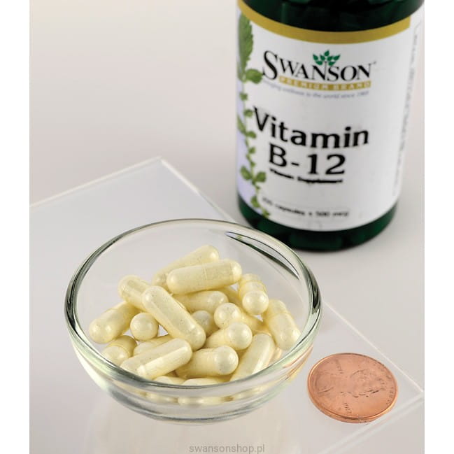 Witamina B-12 500mcg w przystępnej formie kapsułek. Witamina B-12 500mcg jest jedną z niezbędnych witamin dla naszego organizmu. Wspiera prawidłowe funkcjonowanie układu nerwowego, jest pomocna przy stanach depresyjnych. Preparat pozytywnie wpływa na produkcję czerwonych krwinek, wspomaga walkę z anemią. Korzystnie wpływa na procesy pamięciowe oraz koncentrację.